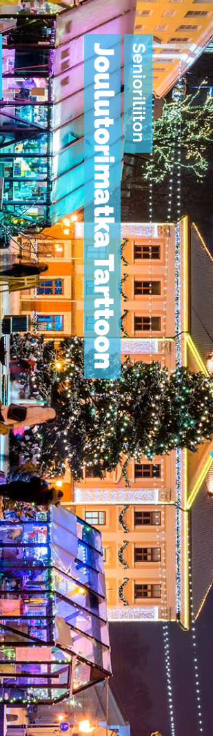 Tere tulemast Tartusse! Tervetuloa Tarttoon! Tarton kaunista ja historiallista yliopistokaupunkia kutsutaan Etelä-Viron keskukseksi, Viron kulttuurin ja sivistyksen kaupungiksi sekä Viron henkiseksi pääkaupungiksi. Kaupunki on myös ainutlaatuinen festivaalien, laulujuhlien ja museoiden kaupunki. Historiaa henkivä Jaanin kulttuurikortteli on jo itsessään elämys ja viimeistään idyllisellä Raatihuoneen torilla pääset kiinni joulun tunnelmaan. Kaupungin sydämestä löydät myös Baltian vanhimman Kasvitieteellisen puutarhan. Tartto edustaa matkailijalle todellista ja autenttista Viroa.