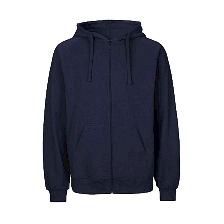Rento istuvuus, kaksinkertainen huppu, litteät nauhat, kengurutaskut, ribbineulotut hihansuut ja vyötärönauha, YKK-vetoketju, 100 % reilun kaupan luomupuuvilla 300 g/m2.